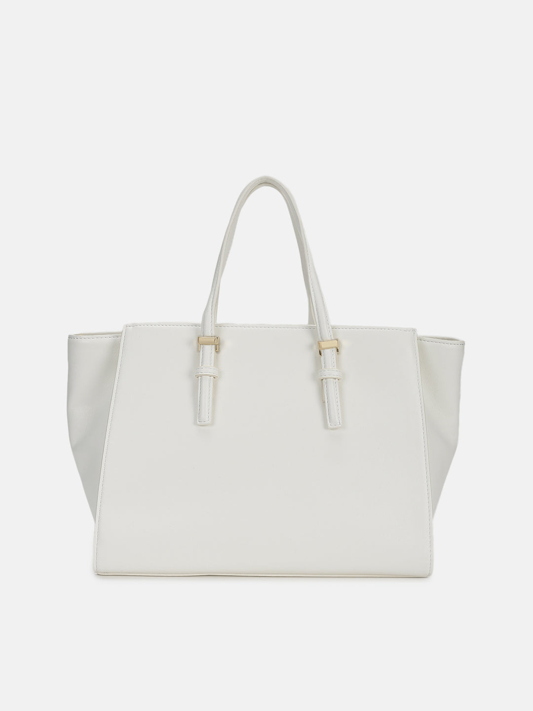Effortlessly chic, this white tote bag is crafted from durable 100% polyester fabric. Its solid design complements any outfit, while its spacious interior provides ample room for your essentials. Perfect for everyday use or a stylish weekend getaway.