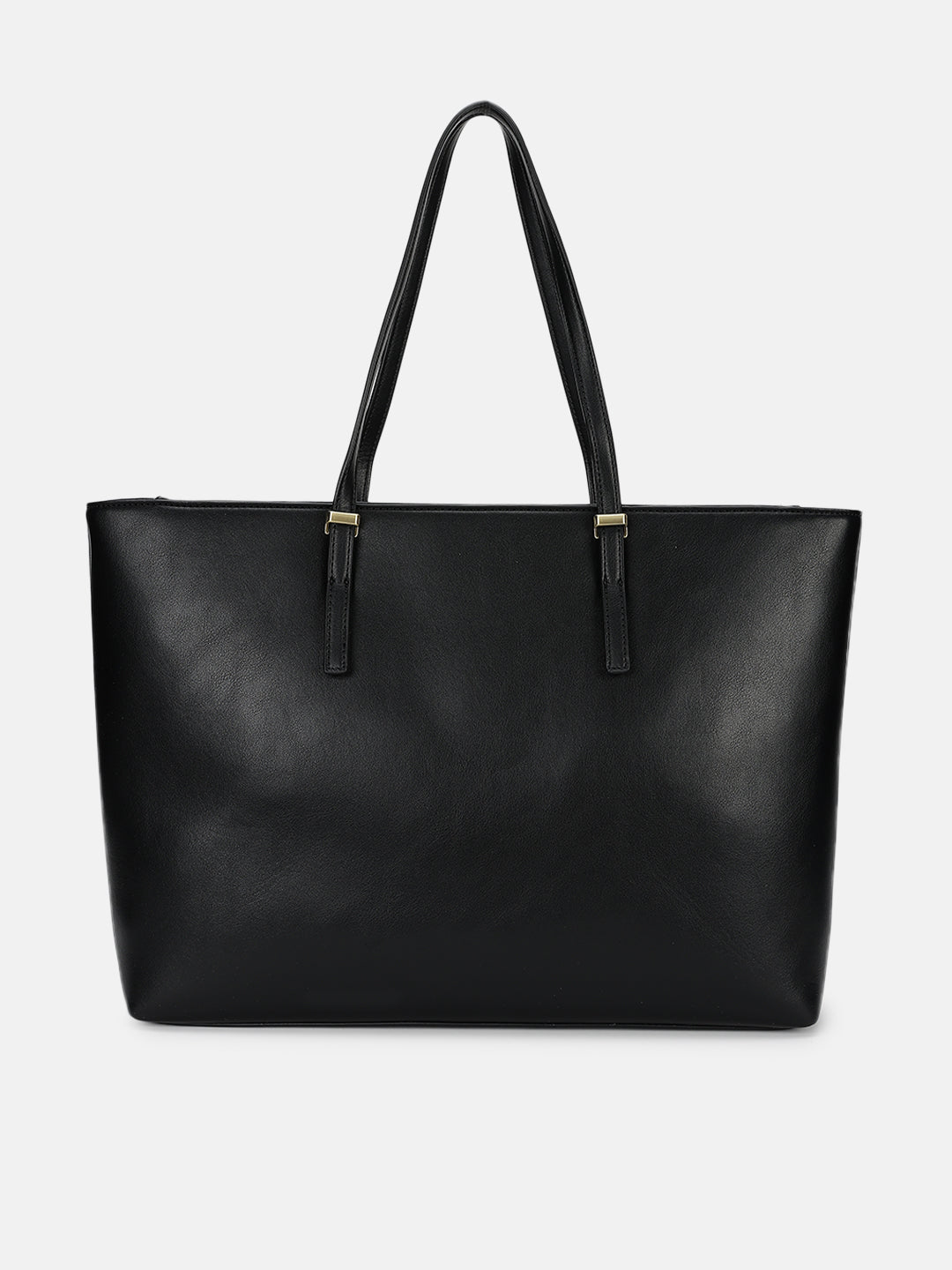 Sleek and stylish, this black tote bag is perfect for everyday use. Crafted from durable 100% polyester, it features a spacious interior and a solid design that complements any outfit.