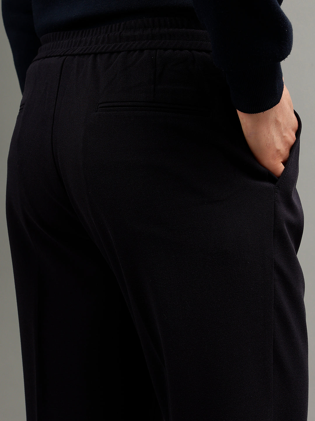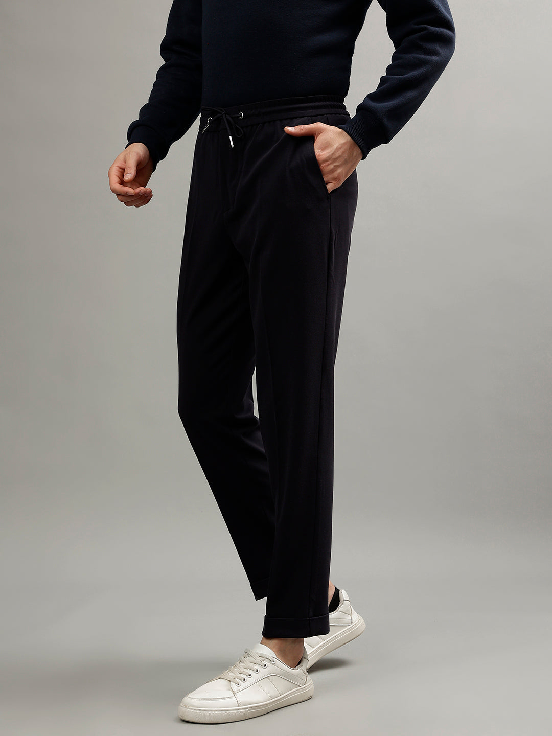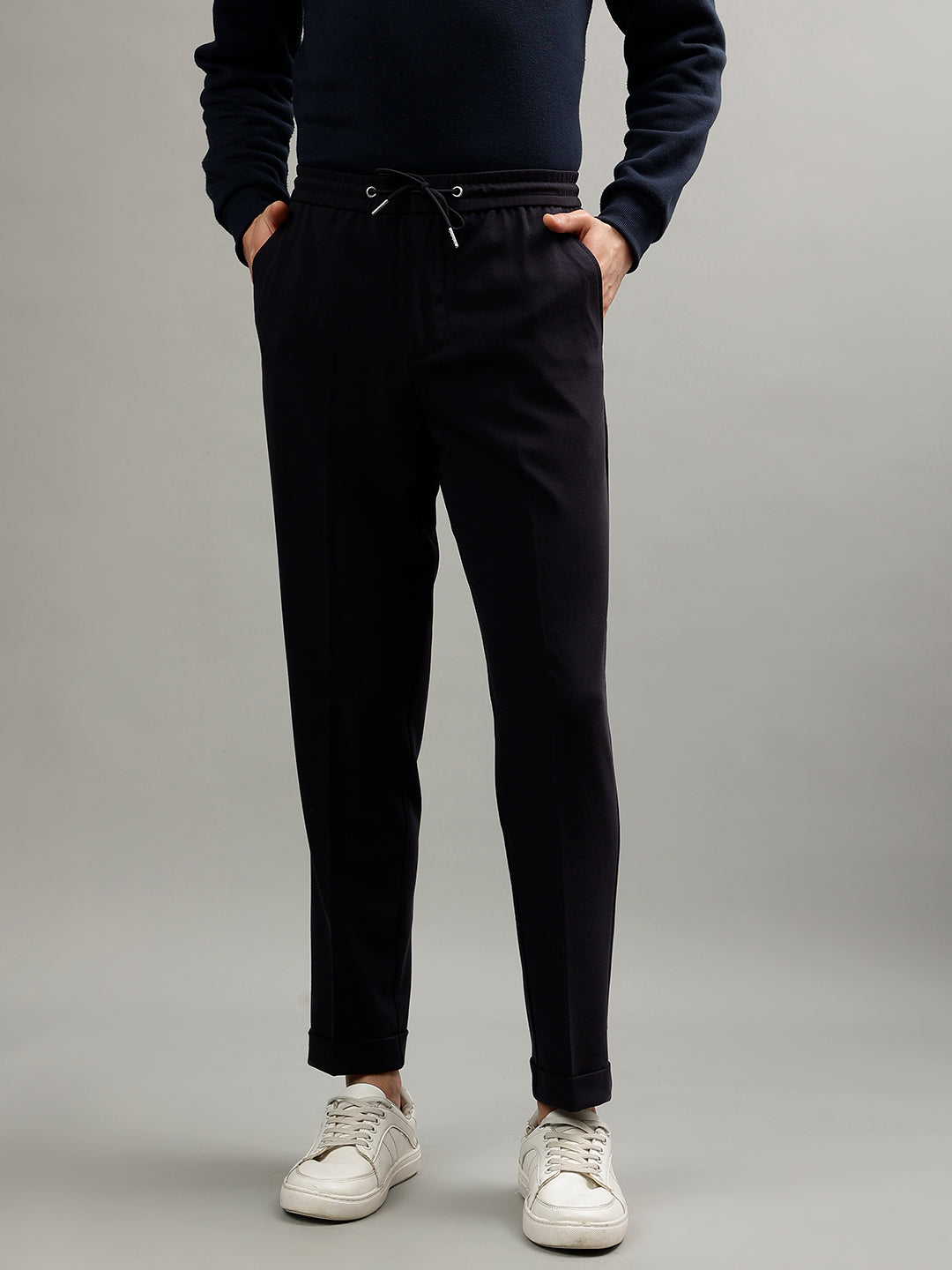 • Lindbergh Men Navy Blue Solid Mid-Rise Regular Fit Regular Trouser
