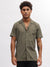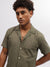 Lindbergh Men Green Embroidered Resort Collar Short Sleeves Shirt