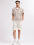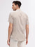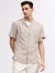 Men Beige Striped Band Collar Short Sleeves Shirt