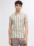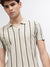 Men Beige Striped Polo Collar Short Sleeves Tshirt
