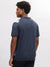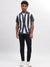 Men Blue Striped Spread Collar Short Sleeves Shirt