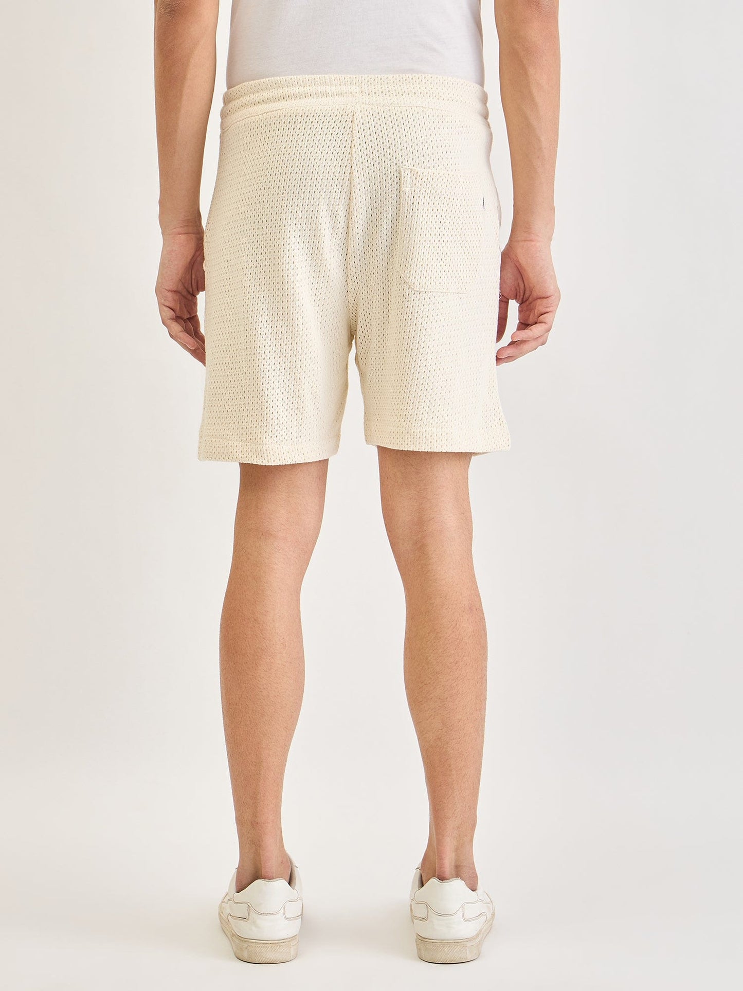 Discover ultimate comfort and style with our cream-colored regular shorts for men. Crafted from pure cotton, these shorts feature a loose fit and an open knit pattern, ensuring breathability and ease of movement. The mid-rise design offers a relaxed yet tailored look, perfect for casual outings or lounging at home. Equipped with a convenient drawstring closure, you can adjust the fit to your preference. Ideal for warm weather, these versatile shorts are a must-have addition to your wardrobe, combining functionality with effortless style.