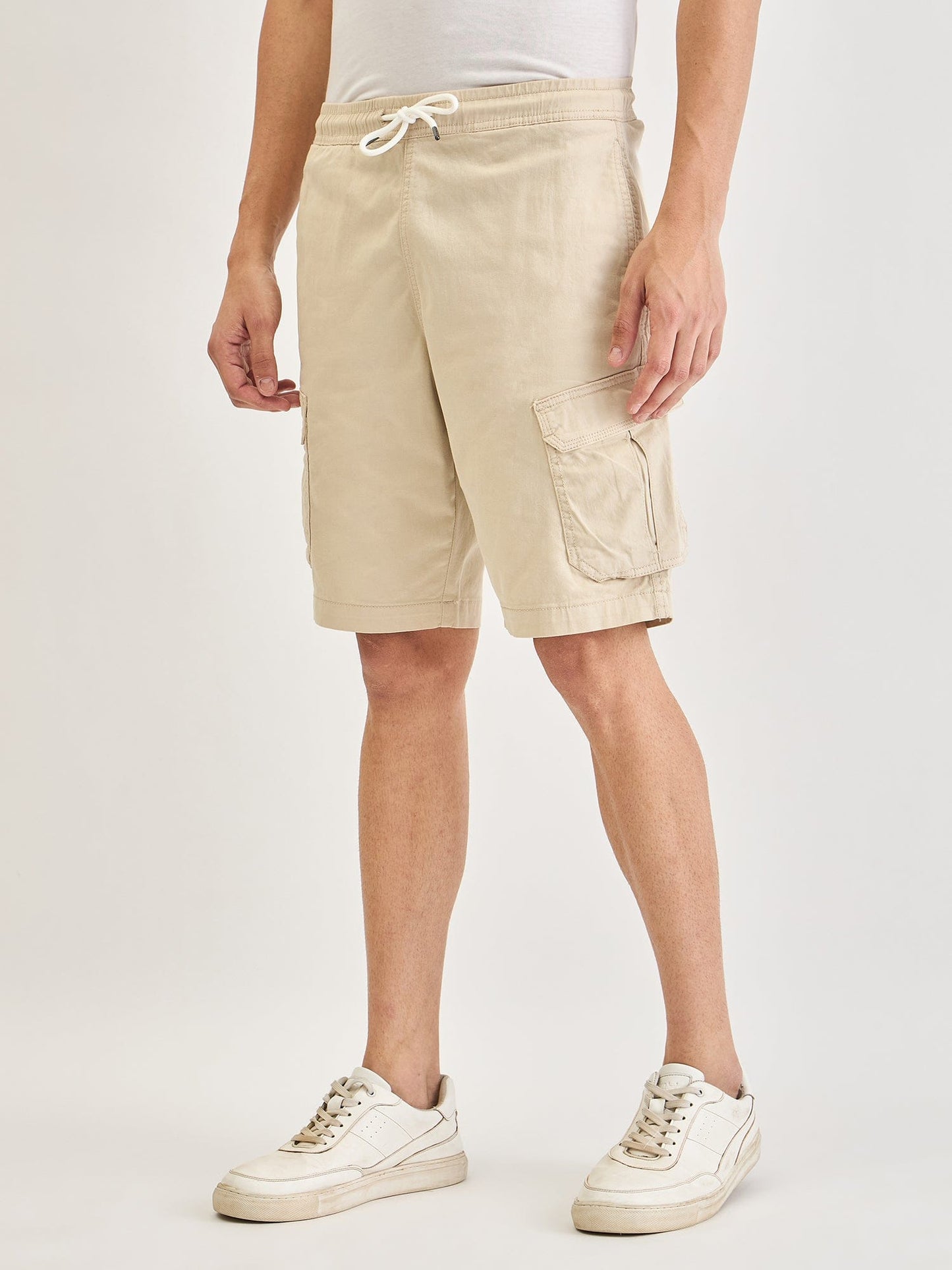 Discover the perfect blend of comfort and style with our cream-colored cargo shorts for men. Designed with a relaxed fit and mid-rise, these shorts offer a laid-back yet polished look. The solid pattern adds a touch of sophistication, making them versatile for any casual occasion. Crafted from high-quality cotton fabric, they ensure breathability and durability. The drawstring closure provides a customizable fit, while multiple pockets offer practicality for your essentials. Ideal for warm weather adventures or relaxed weekends.