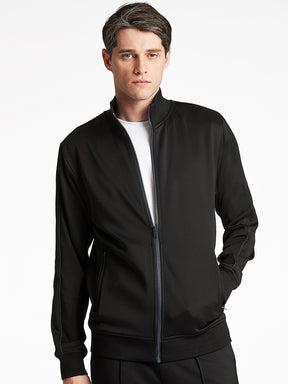 A sleek, all-black silhouette. This high-neck, full-sleeve jacket with zipper closure offers a modern, regular fit in smooth polyester. Effortlessly stylish, its the perfect layer for any occasion.