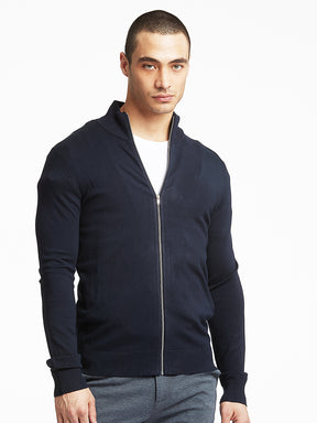 Men Navy Blue Solid Sweater