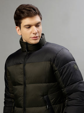 Men Colorblocked Stand Collar Full Sleeves Jacket