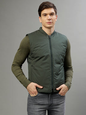 Introducing our stylish sleeveless jacket in a refreshing shade of green. Designed with a stand collar and a relaxed fit, this jacket is perfect for those who love a comfortable yet fashionable look. Its solid color pattern adds a touch of elegance to any outfit. Stay trendy and chic with this must-have addition to your wardrobe.