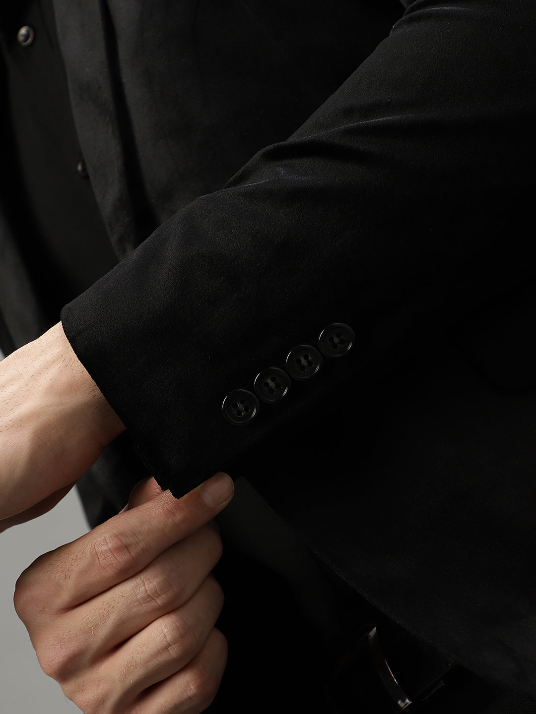 Introducing our sleek and sophisticated black blazer. With its notched lapel and full sleeves, this slim fit blazer exudes elegance and style. Perfect for any occasion, its solid black color adds a touch of timeless charm. Elevate your wardrobe with this must-have piece.