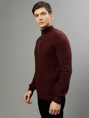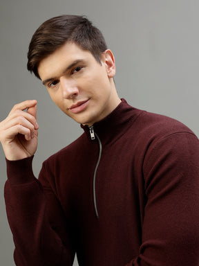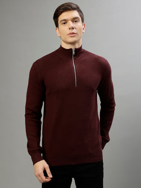 Introducing our maroon sweater, designed with a high neckline and full sleeves for ultimate comfort. Its regular fit and solid color make it a versatile addition to your wardrobe. Stay cozy and stylish with this must-have piece.