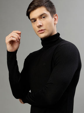 Introducing our sleek and stylish black sweater, designed with a trendy turtle neck and full sleeves for ultimate comfort. Its slim fit accentuates your silhouette, while the solid black color adds a touch of sophistication. Stay warm and fashionable with this must-have wardrobe staple.