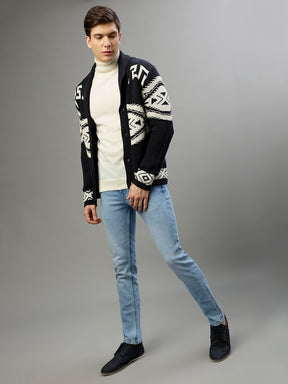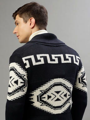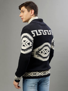 Men Patterned Shawl Collar Full Sleeves Sweater