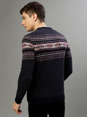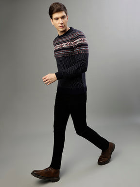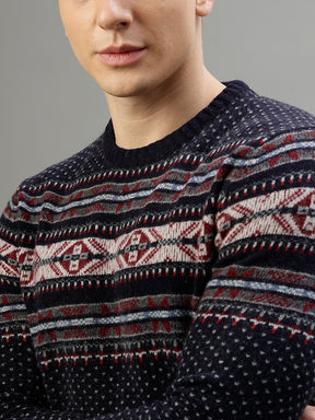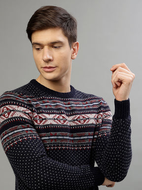 Lindbergh Men Printed Round Neck Full Sleeves Sweater