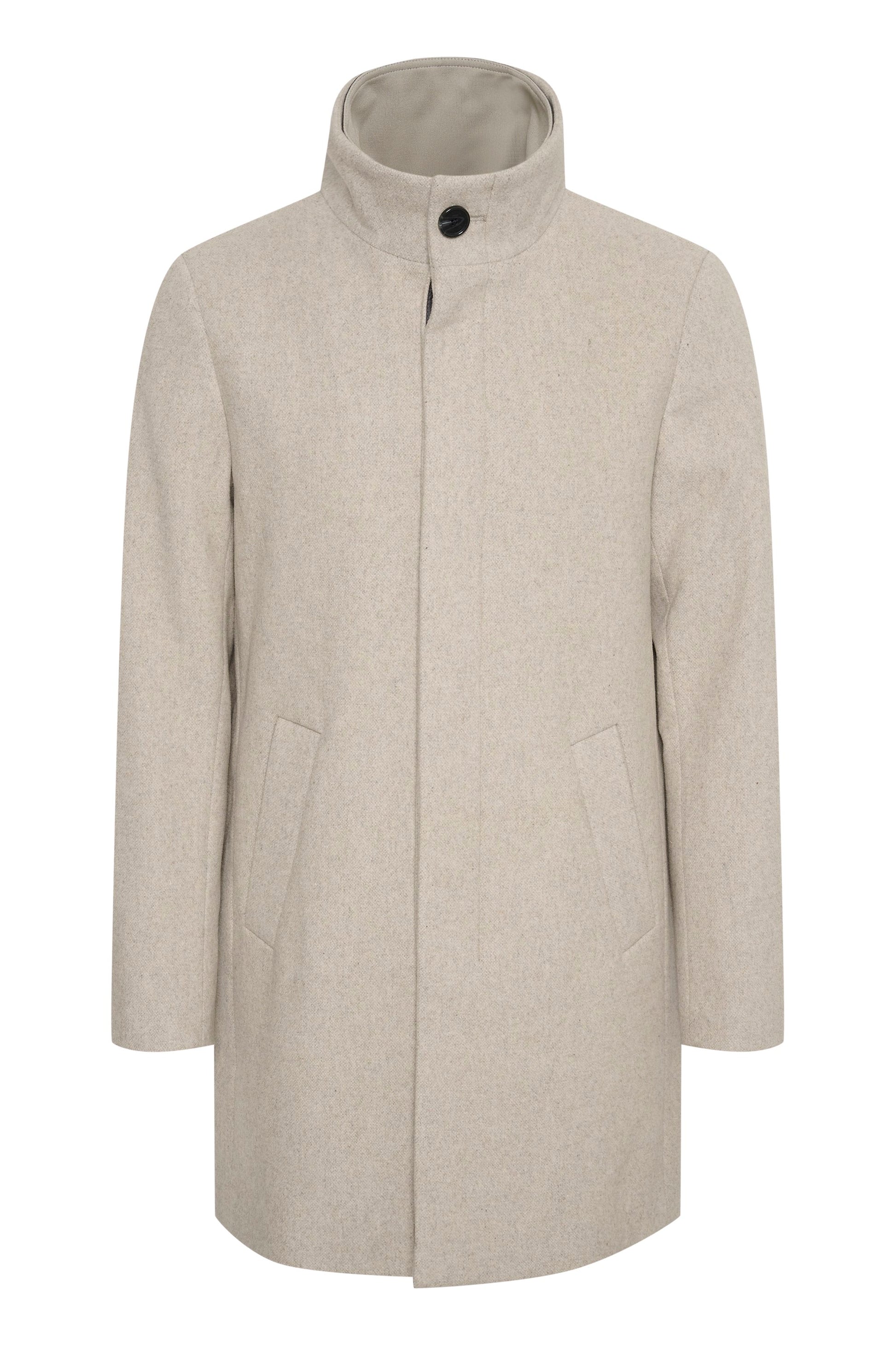 Matinique Men Grey Solid Stand Collar Long Sleeves Overcoat