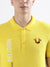 Experience comfort and style with our yellow graphic print t-shirt. This regular fit tee features a classic polo collar and short sleeves, perfect for a casual yet trendy look. Its vibrant color and unique print design make it a must-have addition to your wardrobe.