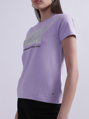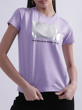 Introducing the iconic True Religion Women Lilac Solid Round Neck t-shirt. Crafted with 95% cotton and 5% elastane, this 180-190 GSM Tee is sure to be your go-to for any occasion.
