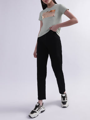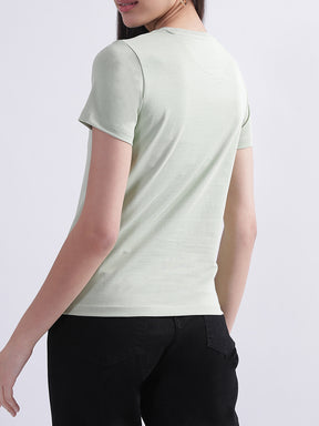 This 180-190 GSM T-shirt is perfect for everyday wear. It's a timeless piece that will become an iconic part of your wardrobe. Get the iconic True Religion Women's Green Solid Round Neck T-shirt today!