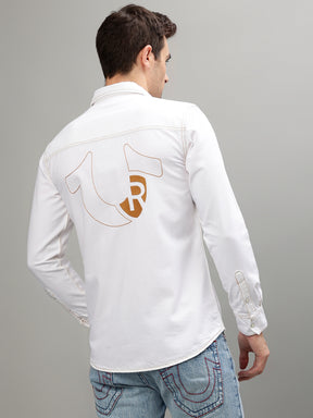 Introducing our classic white shirt, designed with a shirt collar and full sleeves for a sophisticated look. With its regular fit and solid white color, this shirt is perfect for any occasion. Elevate your style with this timeless piece that exudes elegance and versatility.