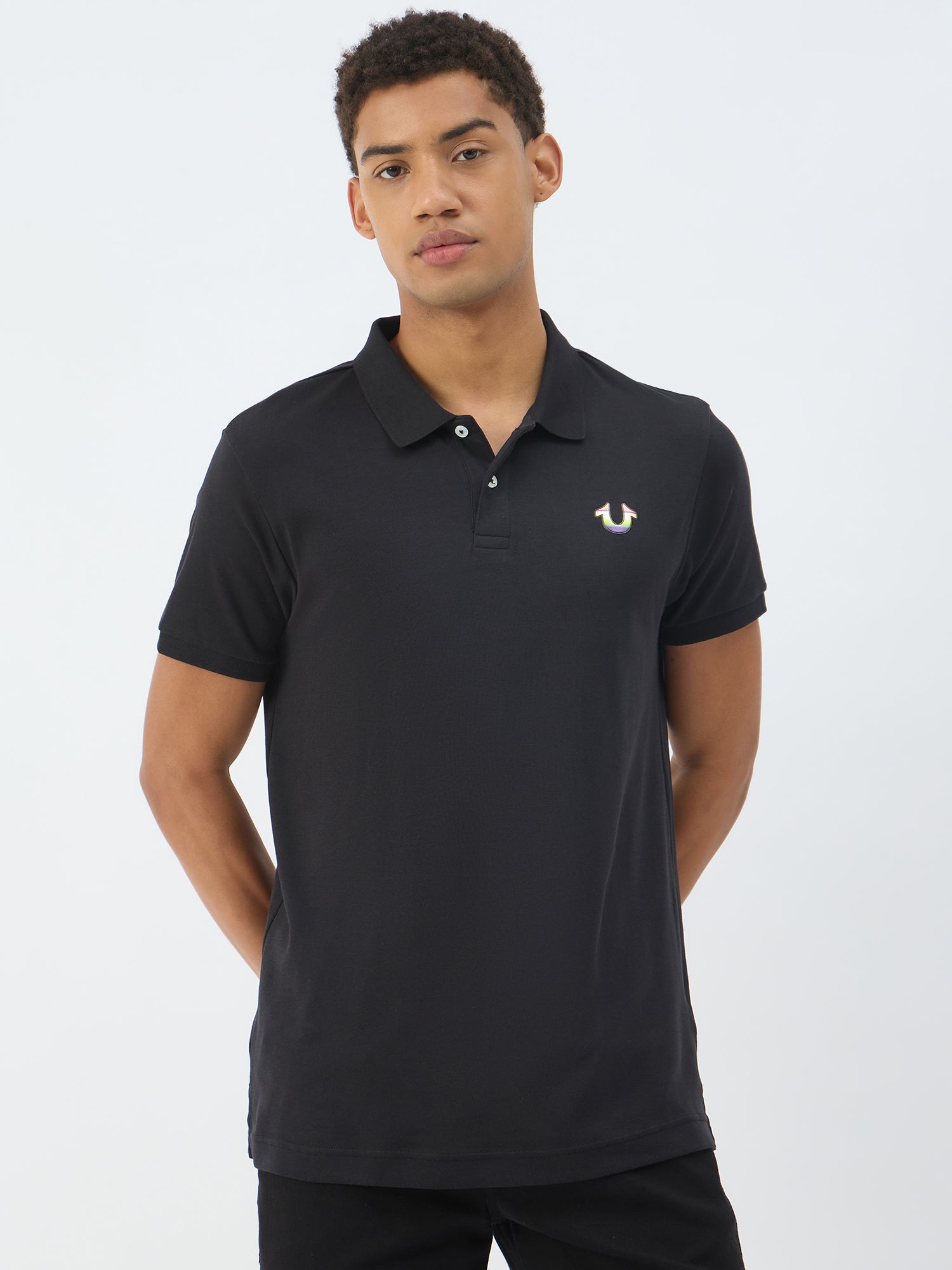 This classic black polo shirt is a wardrobe essential for any man. Made from pure cotton it's soft comfortable and breathable. The regular fit ensures a flattering look while the short sleeves and polo collar provide a timeless style. The button closure adds a touch of sophistication. The stretchable TPU mold provides added durability and shape retention.