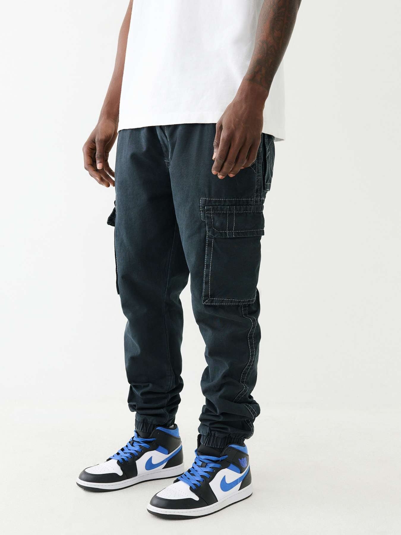 True Religion Men Green Solid Oversize Fit Mid-Rise Trouser
