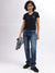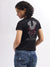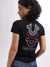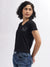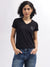 Women Black Printed V-Neck Short Sleeves T-Shirt
