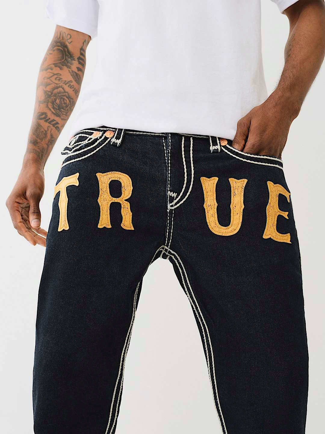 True Religion Men Rope Stitch Ricky Straight Fit Dark Wash Jeans