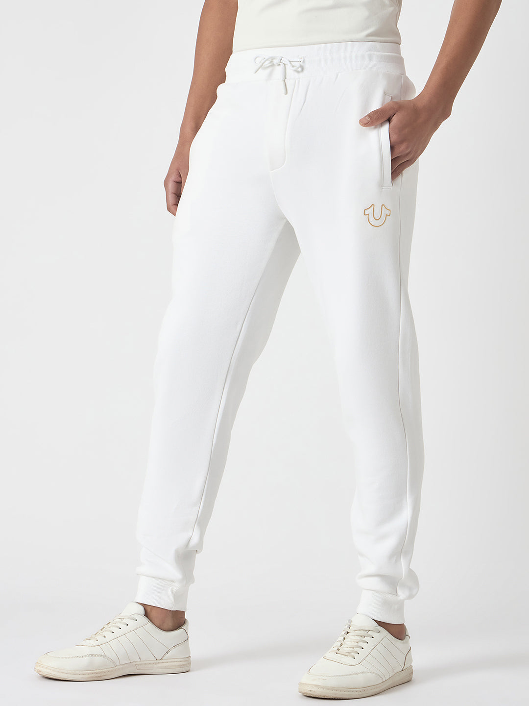 Stay comfortable and stylish in these white joggers. Made from a blend of poly and cotton, these sweatpants offer a regular fit with a mid-rise waist and drawstring closure. The solid pattern and classic jogger style make them perfect for everyday wear.