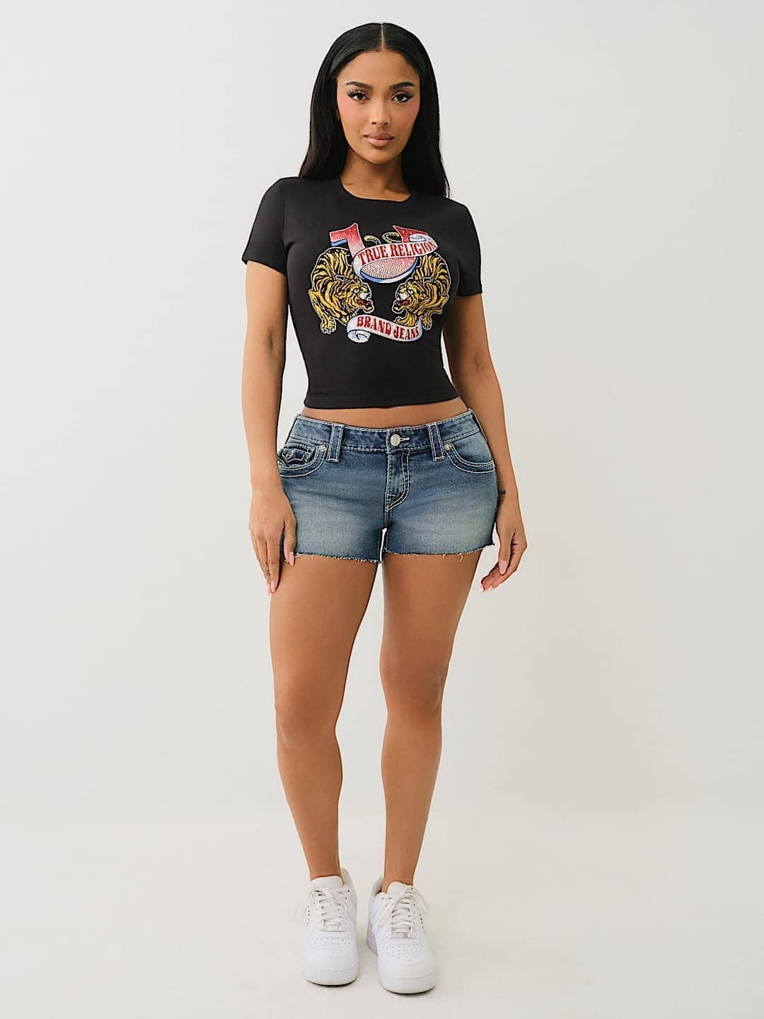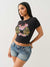 Discover the perfect blend of style and comfort with our stretchable black top. Designed for a sleek skinny fit, this top features a trendy graphic print pattern that adds a touch of modern flair to your wardrobe. The short sleeves and round neck offer a classic look, while the soft cotton fabric ensures all-day comfort. With a convenient pull-on closure, this top is easy to wear and versatile enough for any occasion. Pair it with your favorite jeans or skirt for a chic and effortless ensemble.