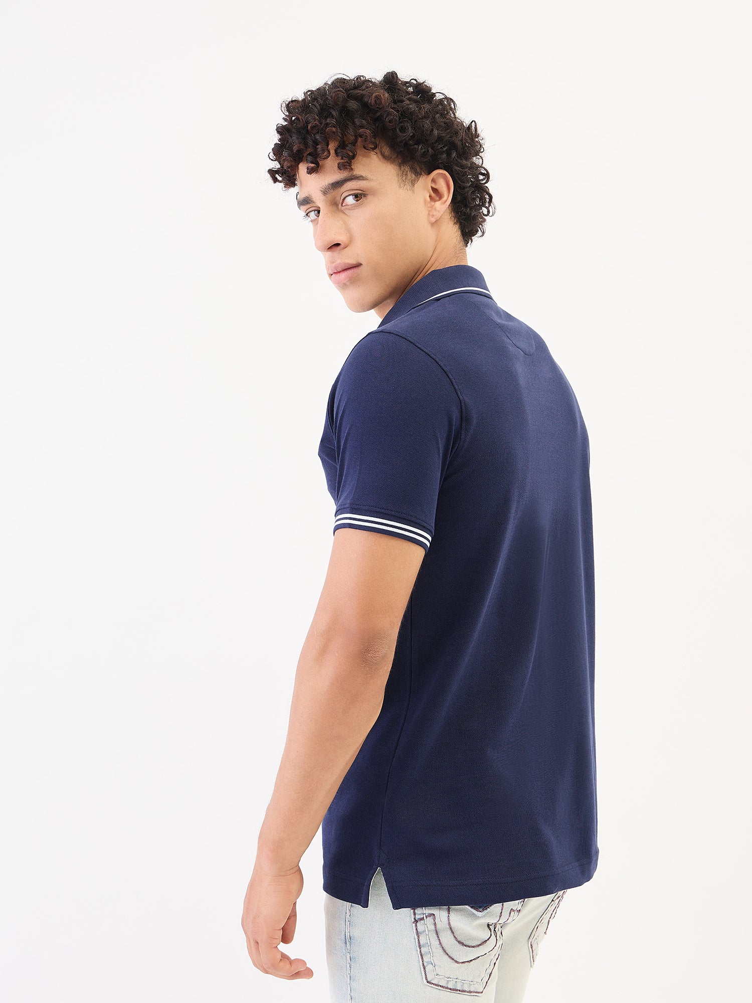 Discover the perfect blend of style and comfort with our stretchable blue polo t-shirt for men. Crafted from pure cotton fabric, this regular fit tee offers a soft touch and breathability, ensuring all-day comfort. The solid pattern and classic polo collar add a timeless appeal, while the short sleeves provide a relaxed feel. Featuring a modern zipper closure, this polo t-shirt is both functional and fashionable. Ideal for casual outings or smart-casual events, elevate your wardrobe with this versatile piece.
