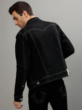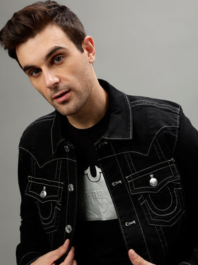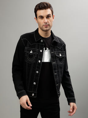 True Religion Men Solid Spread Collar Full Sleevess Jacket