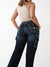 True Religion Womens Big T Cargo Pant Cargo Fit Blue Mid Rise Jeans