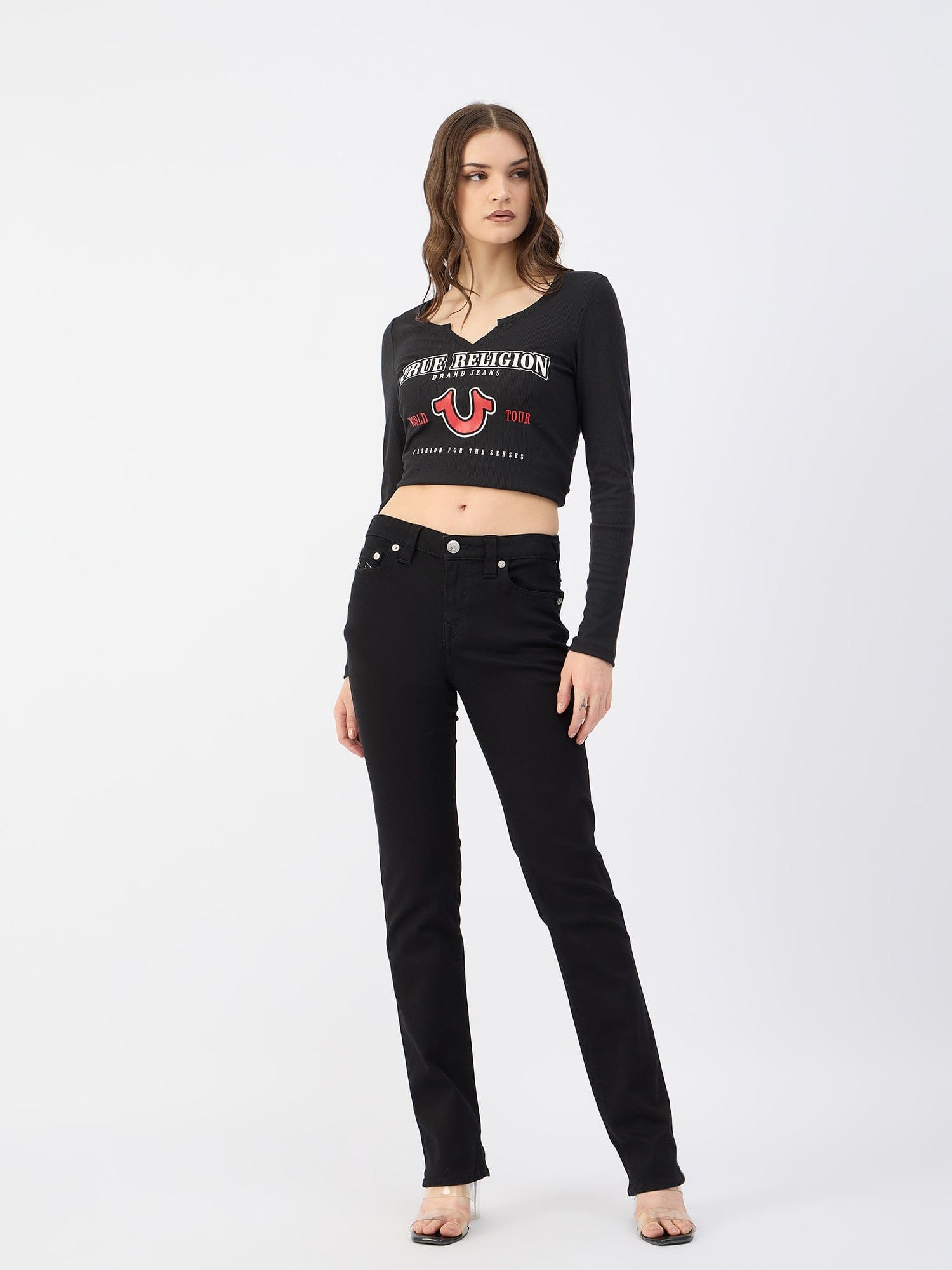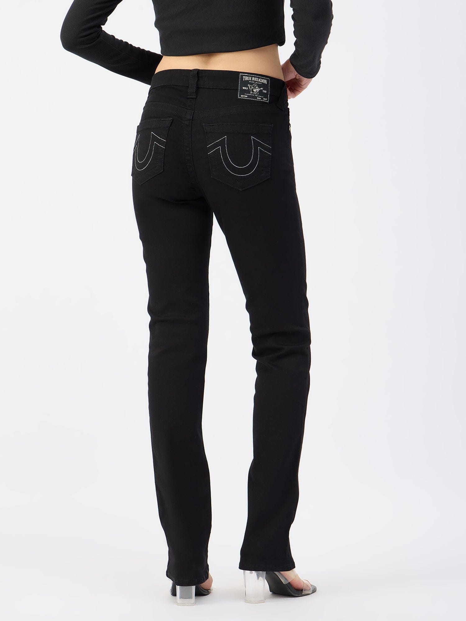 These black straight-leg jeans are your new wardrobe staple. Crafted from a comfortable polyester blend they offer a flattering mid-rise fit. The button and zipper closure ensures a secure and comfortable fit. Perfect for any occasion these jeans are both stylish and versatile.