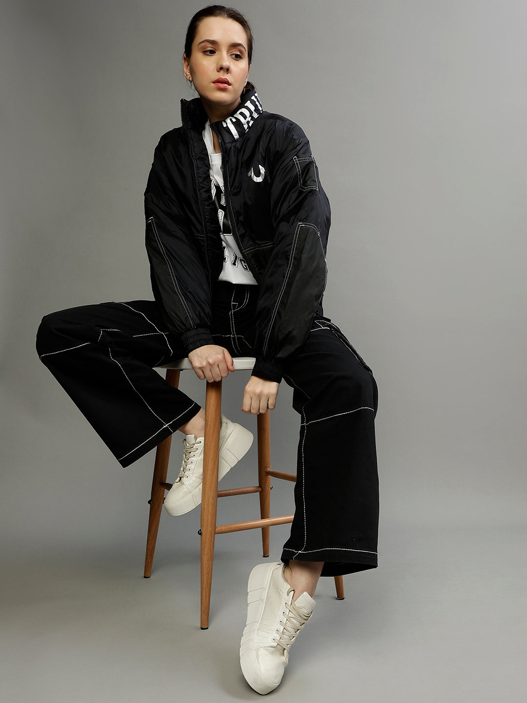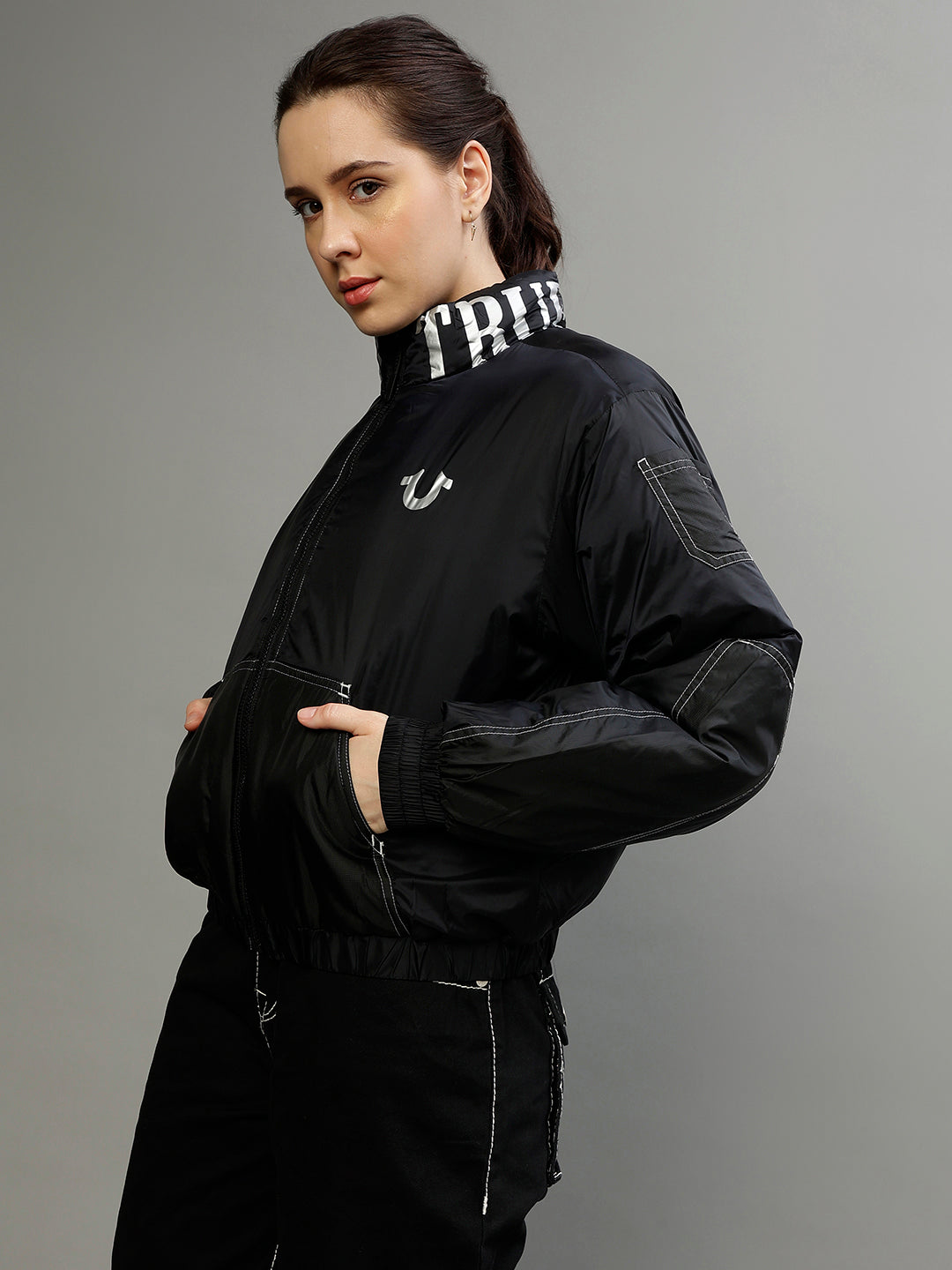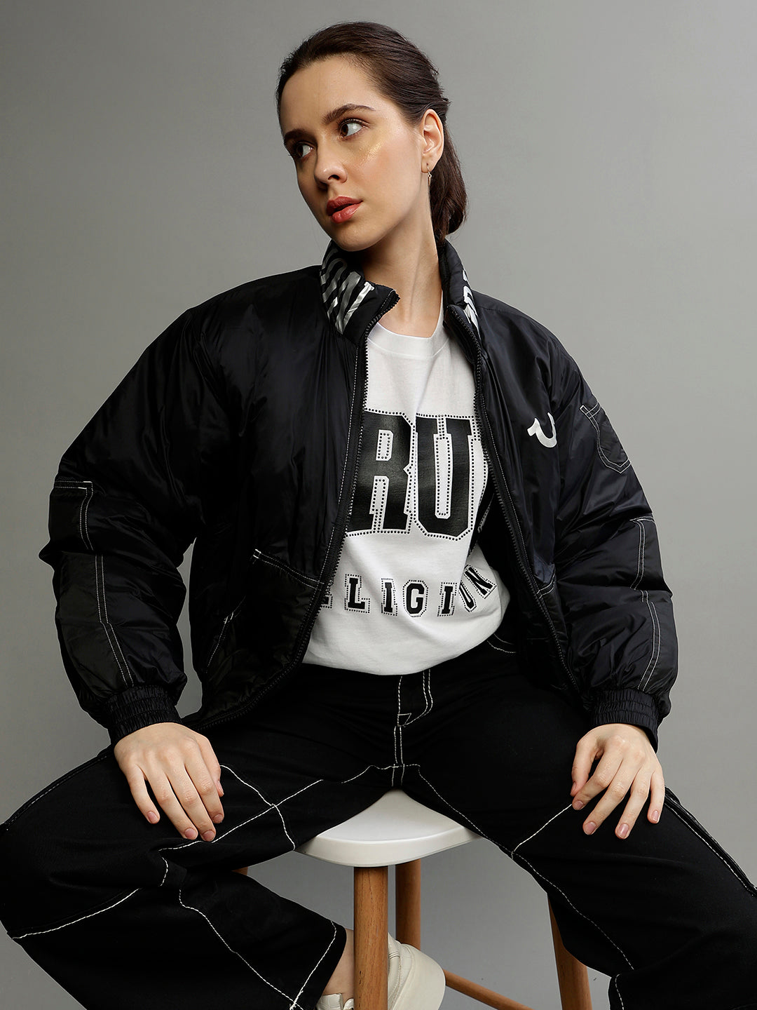 True Religion Women Printed High Neck Full Sleeves Puffer Jacket