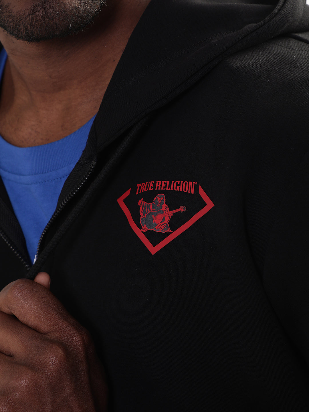 Designed from a comfortable fabric, this men's hoodie features a zipped front and split kangaroo pockets. It is finished with a horseshoe logo on the chest and is a pure combination of elegance and trend.