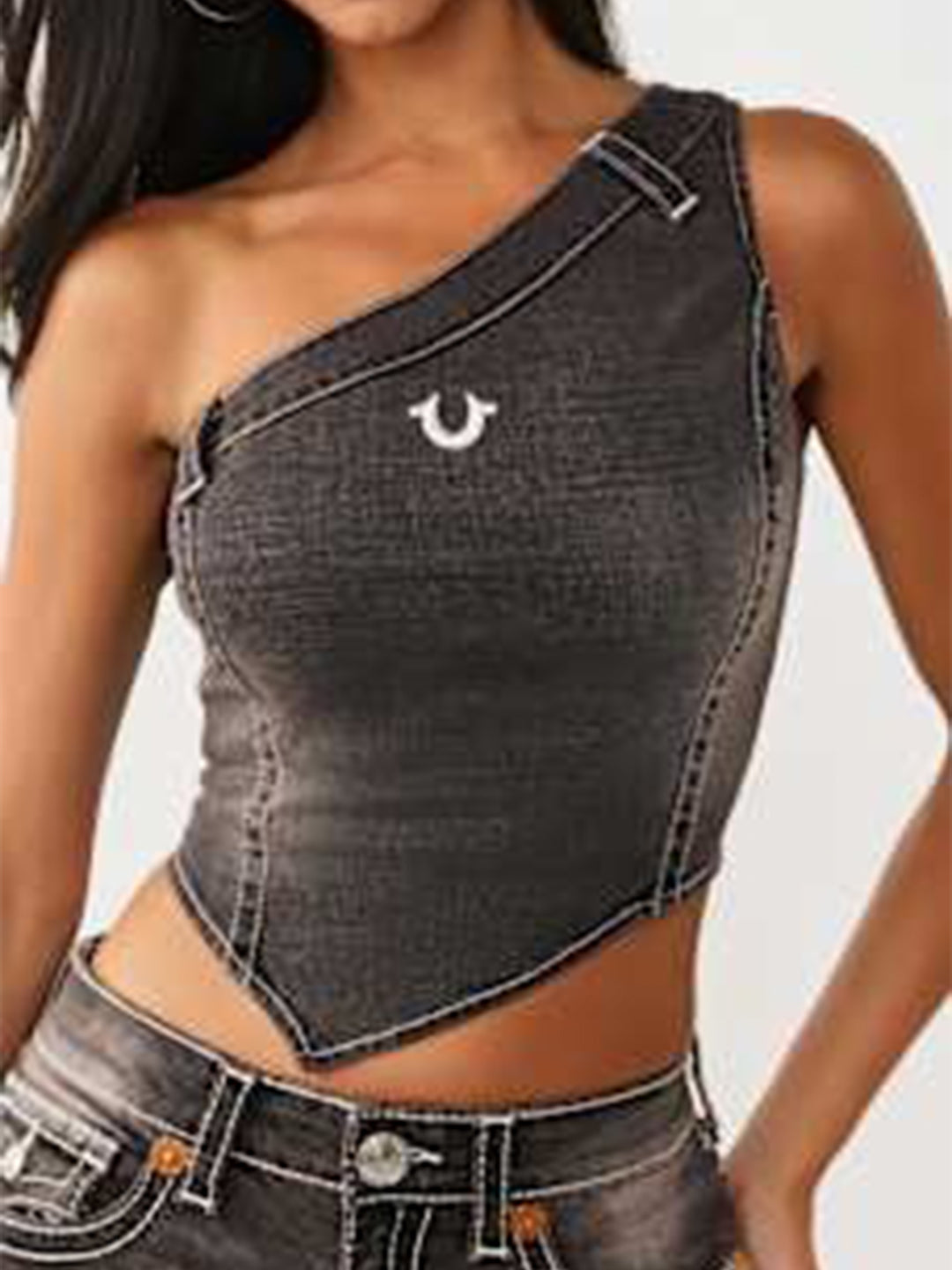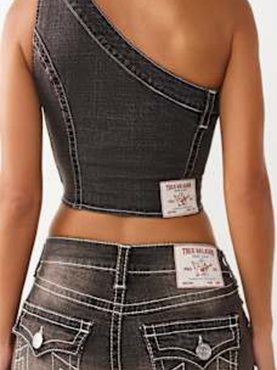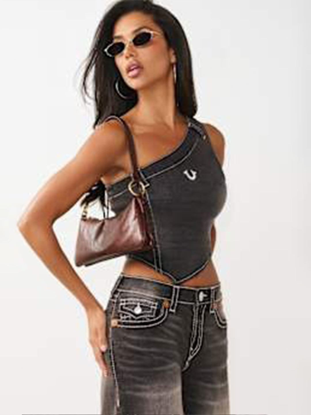 Elevate your wardrobe with the TRUE RELIGION Women's Brown One Shoulder Top. This stylish and versatile top effortlessly combines fashion and comfort, making it a must-have for any fashion-forward women. The one-shoulder design adds a trendy twist to any outfit, while the high-quality fabric ensures long-lasting wear. Whether you are dressing up for a night out or keeping it casual, this top is the perfect choice. Add a touch of sophistication to your look with this chic and timeless piece.